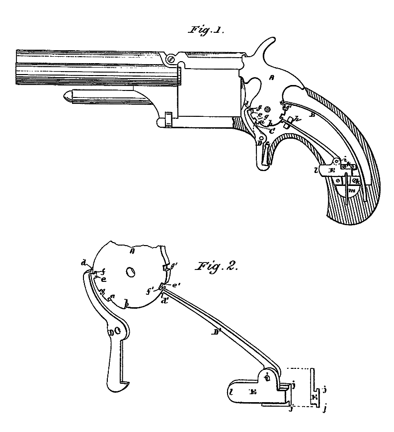 US 196794 United States Patent Office OSCAR FRANKENAU, OF NÜRNBERG, GERMANY IMPROVEMENT IN COMBINED POCKET-BOOK AND REVOLVER. Specification forming part of Letters Patent No. 196,794, dated November 6, 1877; application filed September 14, 1877. To all whom it may concern: Be it known that I, OSCAR FRANKENAU, of Nürnberg, Germany,…
